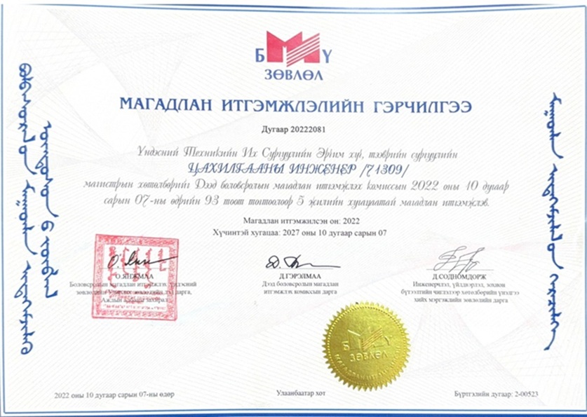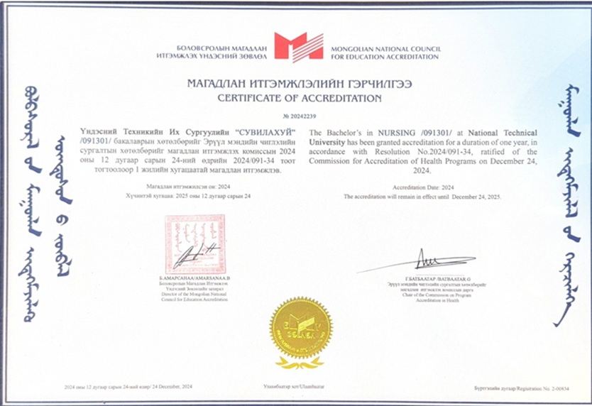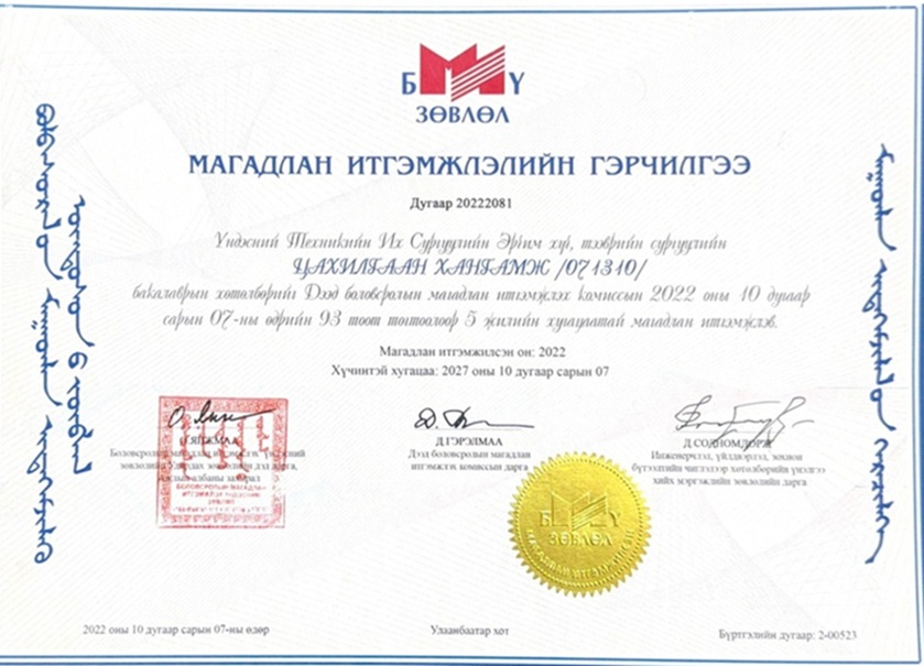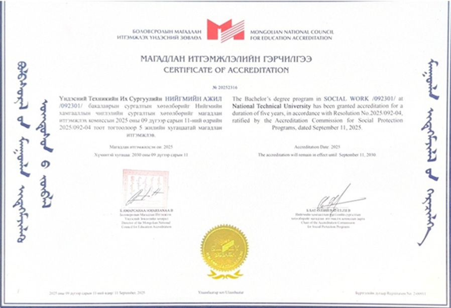 хөтөлбөрүүд магадлан итгэмжлэлээ 5 жилийн хугацаатай амжилттай гардлаа